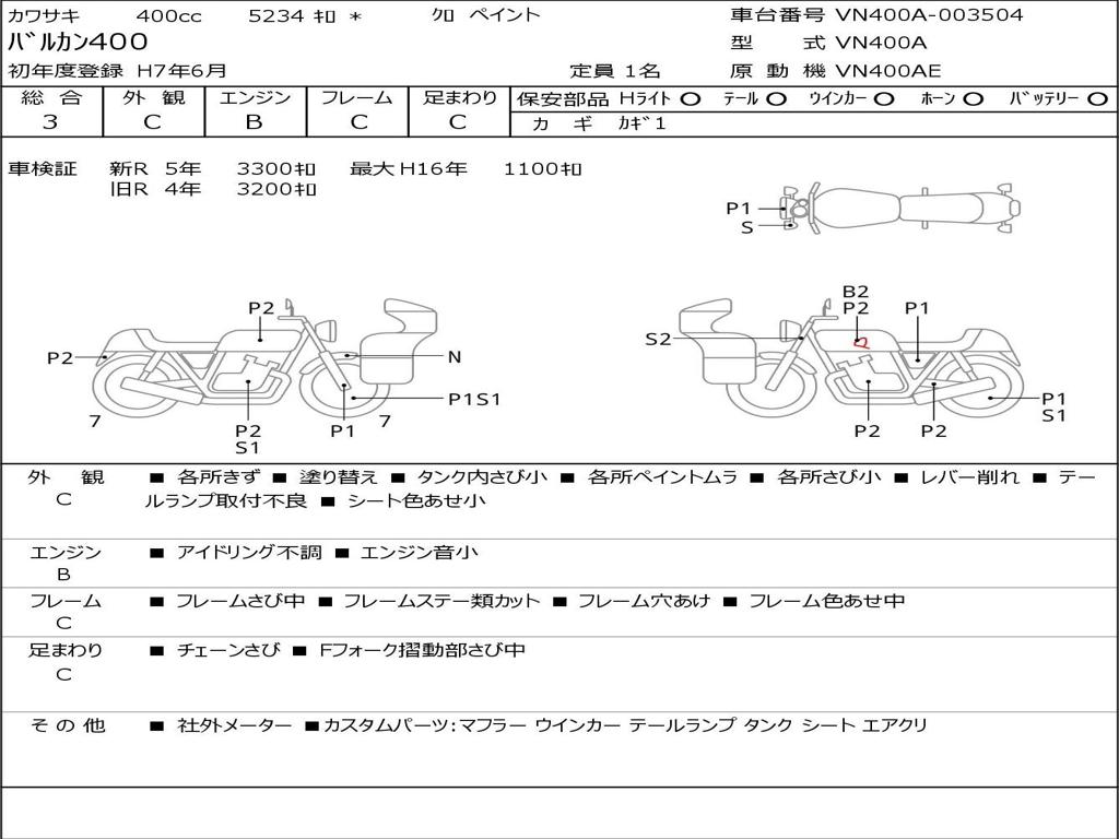 | Номер рамы / VIN | VN400A-003504 |