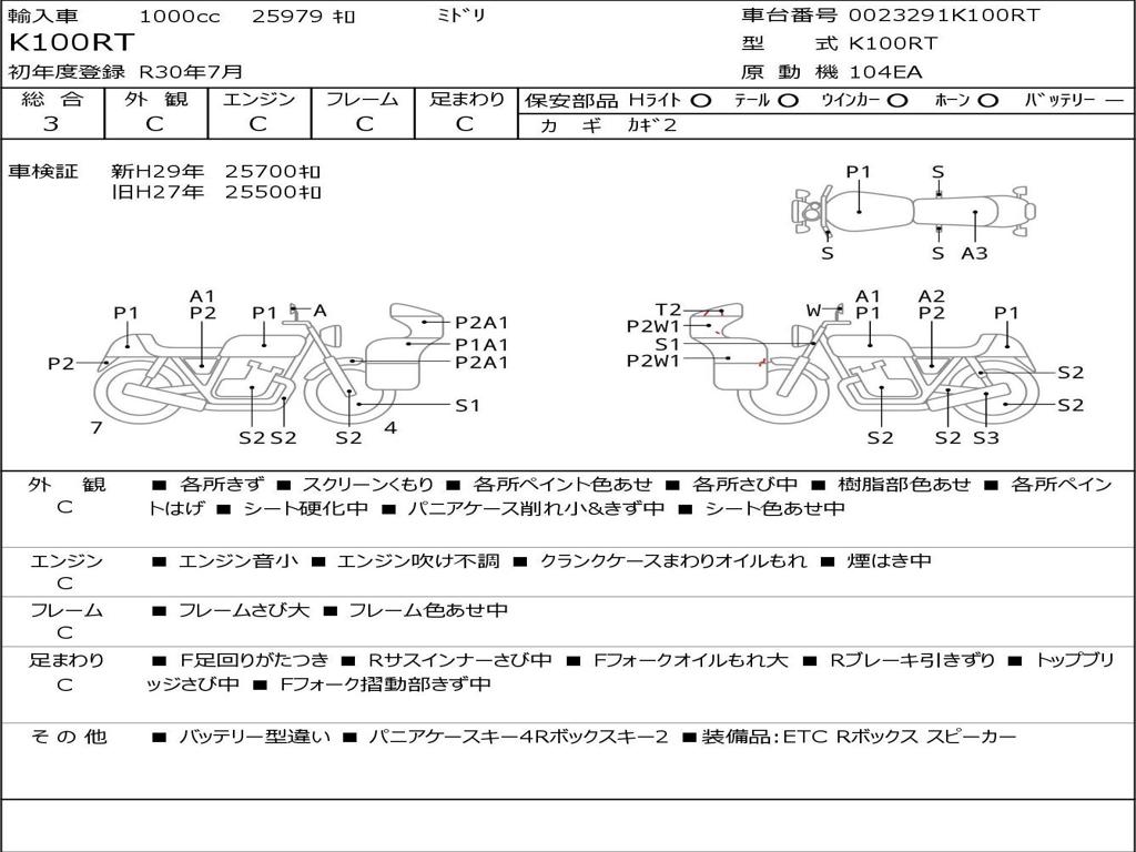 | Номер рамы / VIN | 0023291K100RT |