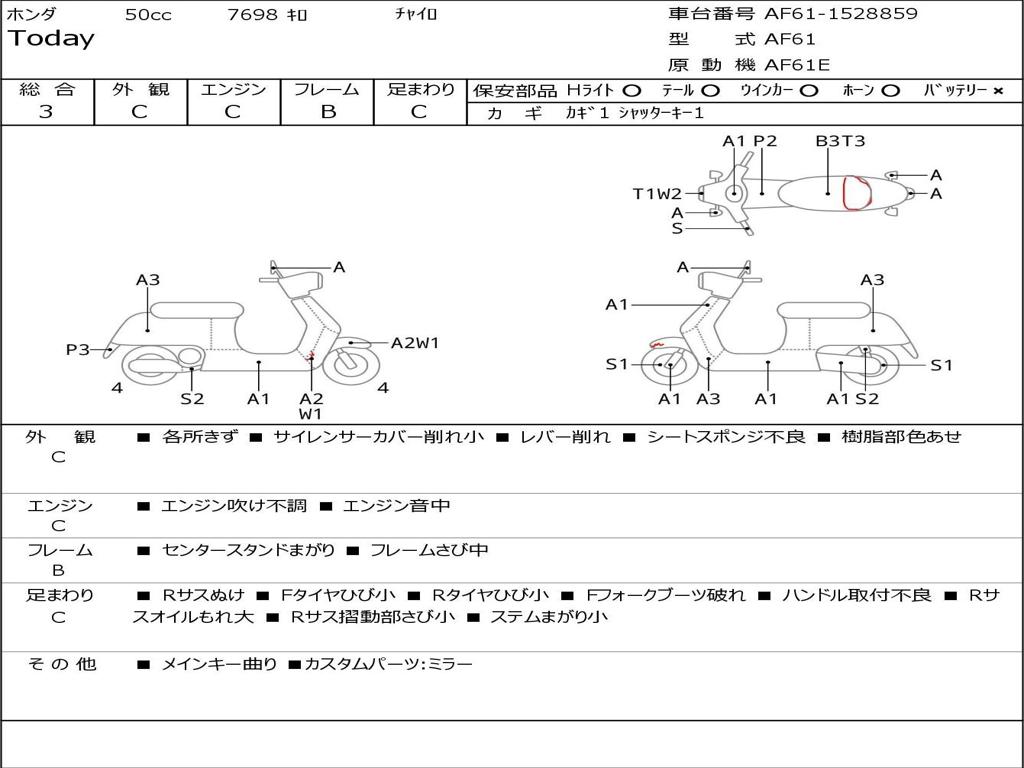 | Номер рамы / VIN | AF61-1528859 |