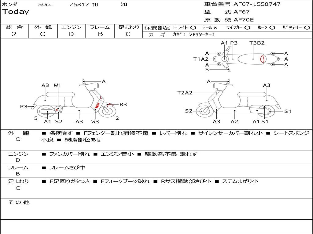 | Номер рамы / VIN | AF67-1558747 |