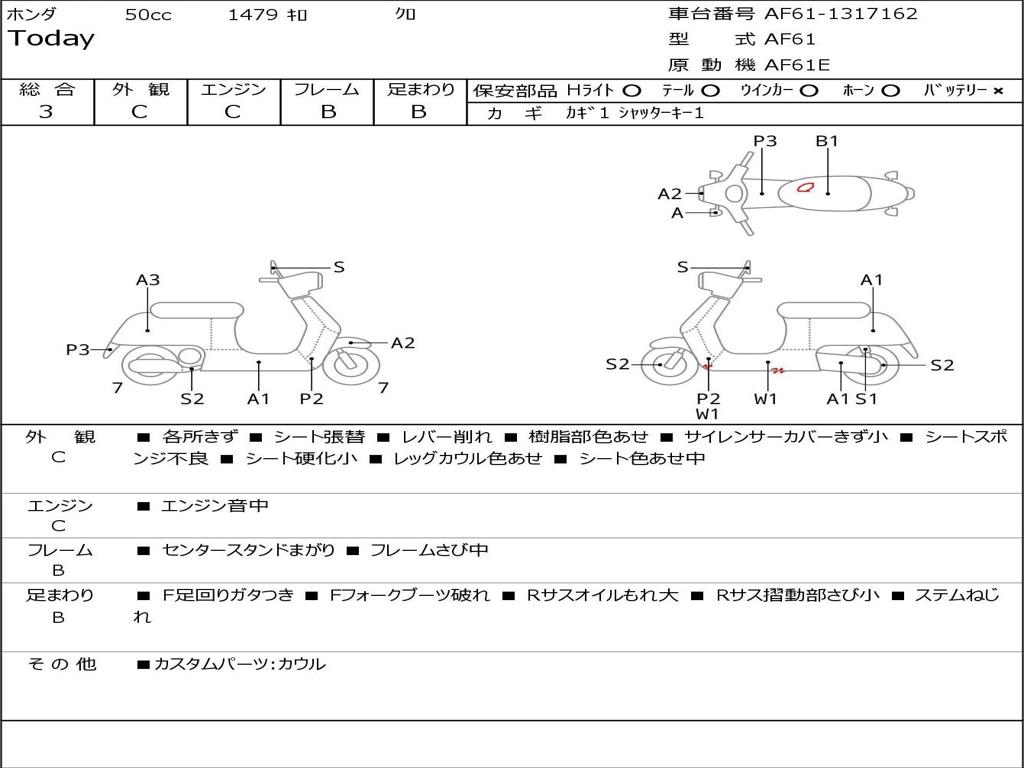 | Номер рамы / VIN | AF61-1317162 |