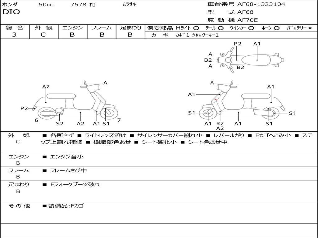| Номер рамы / VIN | AF68-1323104 |