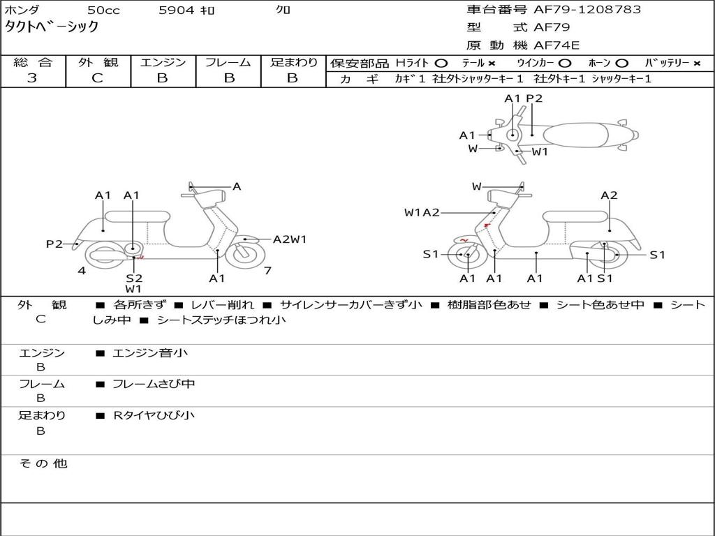 | Номер рамы / VIN | AF79-1208783 |