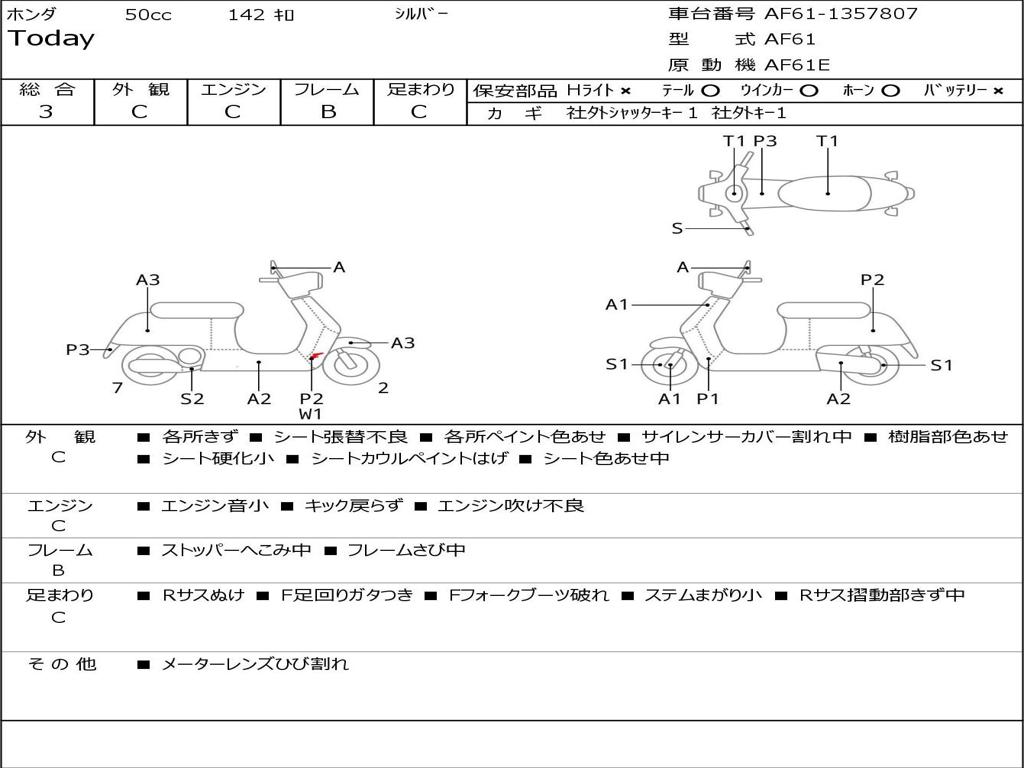 | Номер рамы / VIN | AF61-1357807 |
