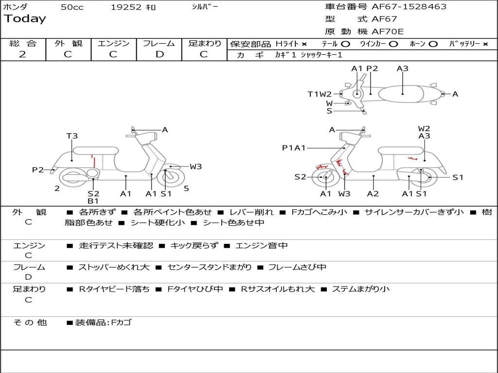 | Номер рамы / VIN | AF67-1528463 |