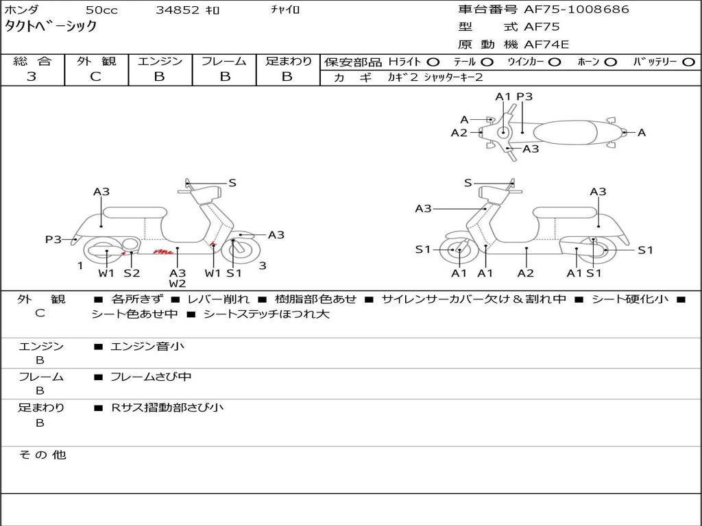 | Номер рамы / VIN | AF75-1008686 |