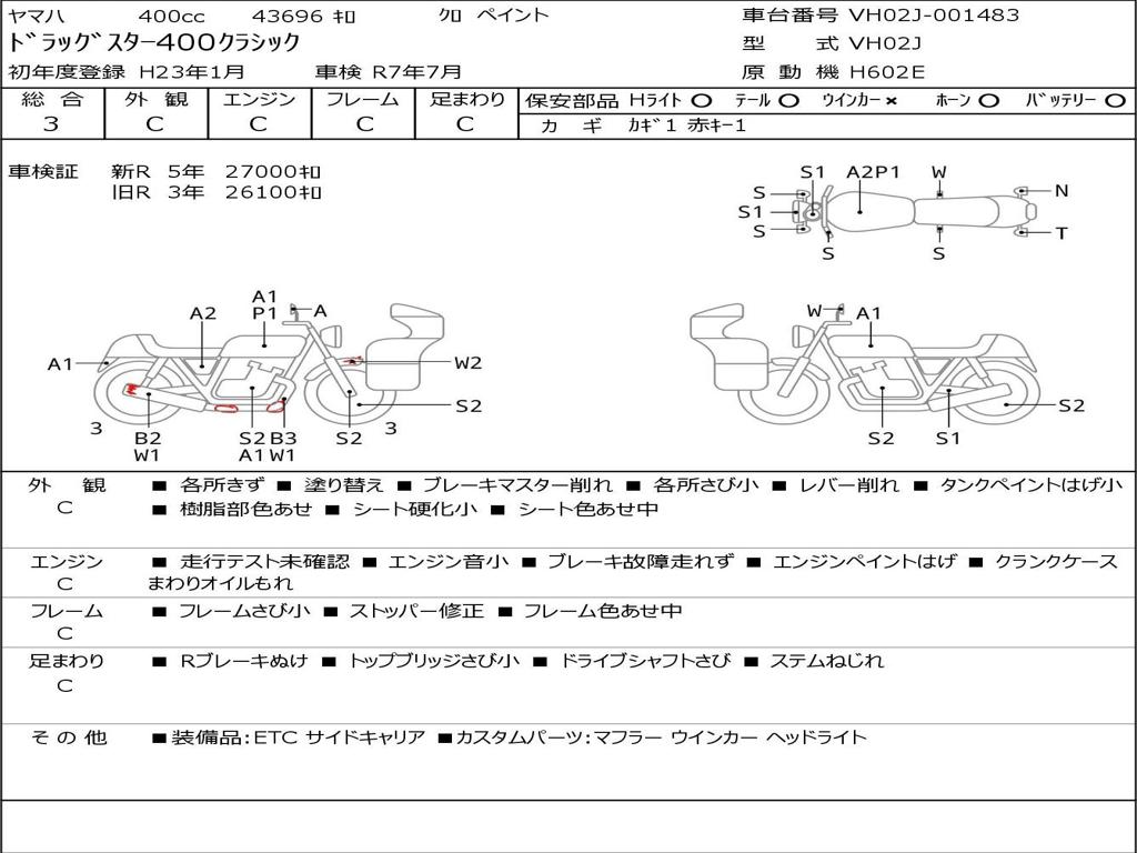 | Номер рамы / VIN | VH02J-001483 |