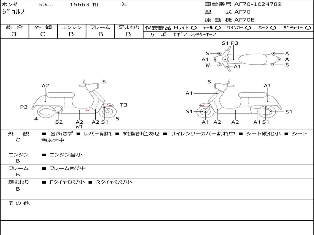 | Номер рамы / VIN | AF70-1024789 |