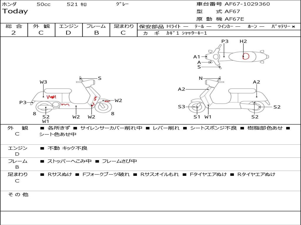 | Номер рамы / VIN | AF67-1029360 |