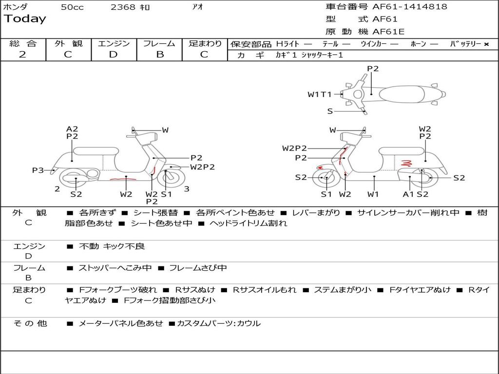 | Номер рамы / VIN | AF61-1414818 |