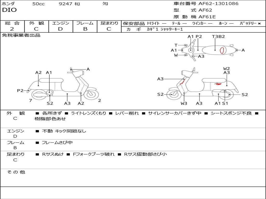 | Номер рамы / VIN | AF62-1301086 |