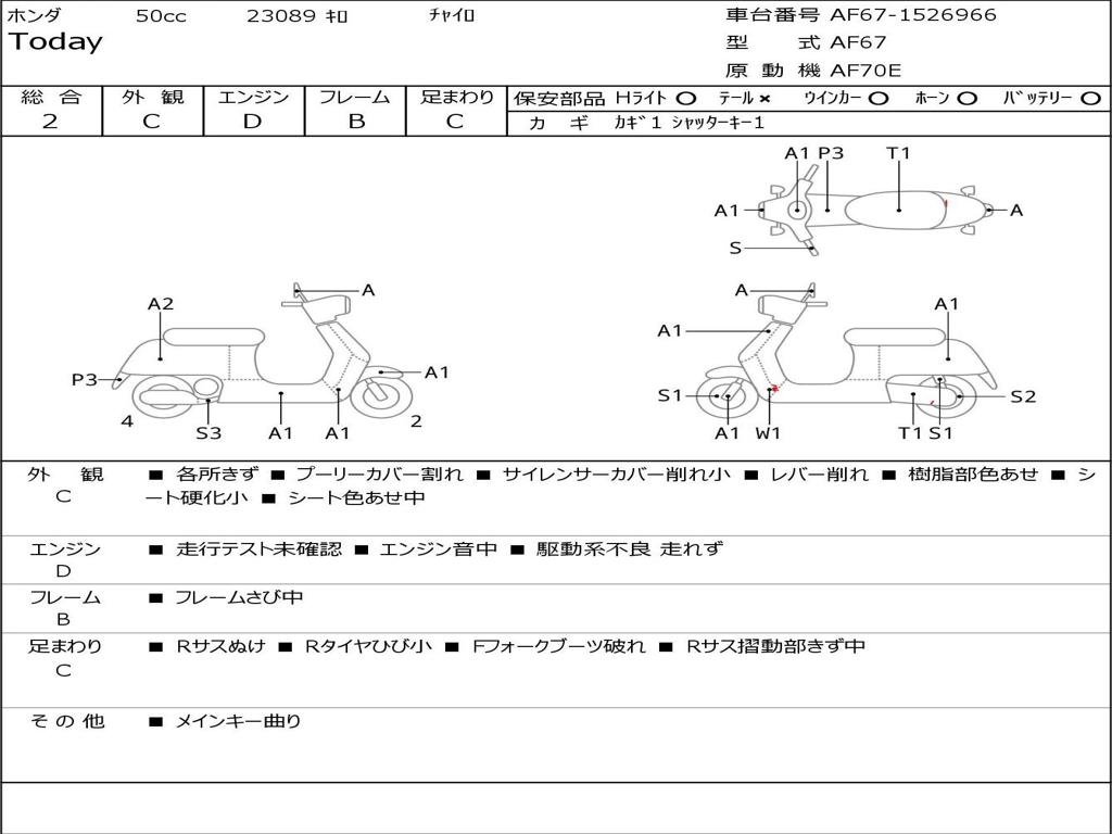 | Номер рамы / VIN | AF67-1526966 |