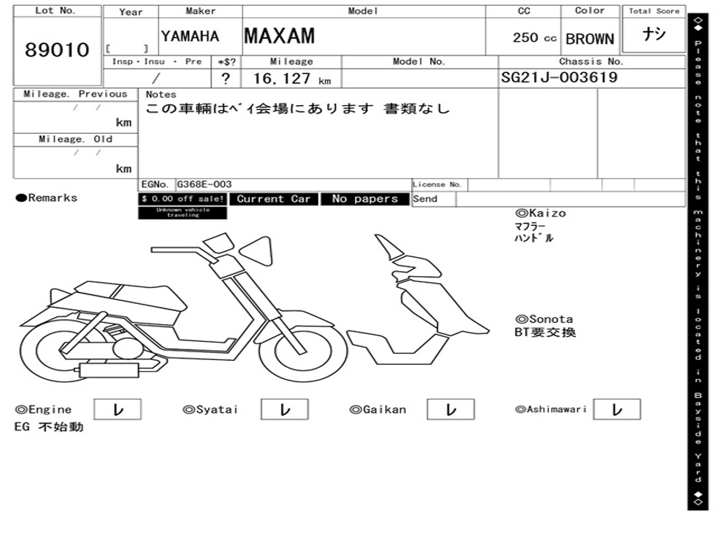 | Номер рамы / VIN | SG21J-003619 |
