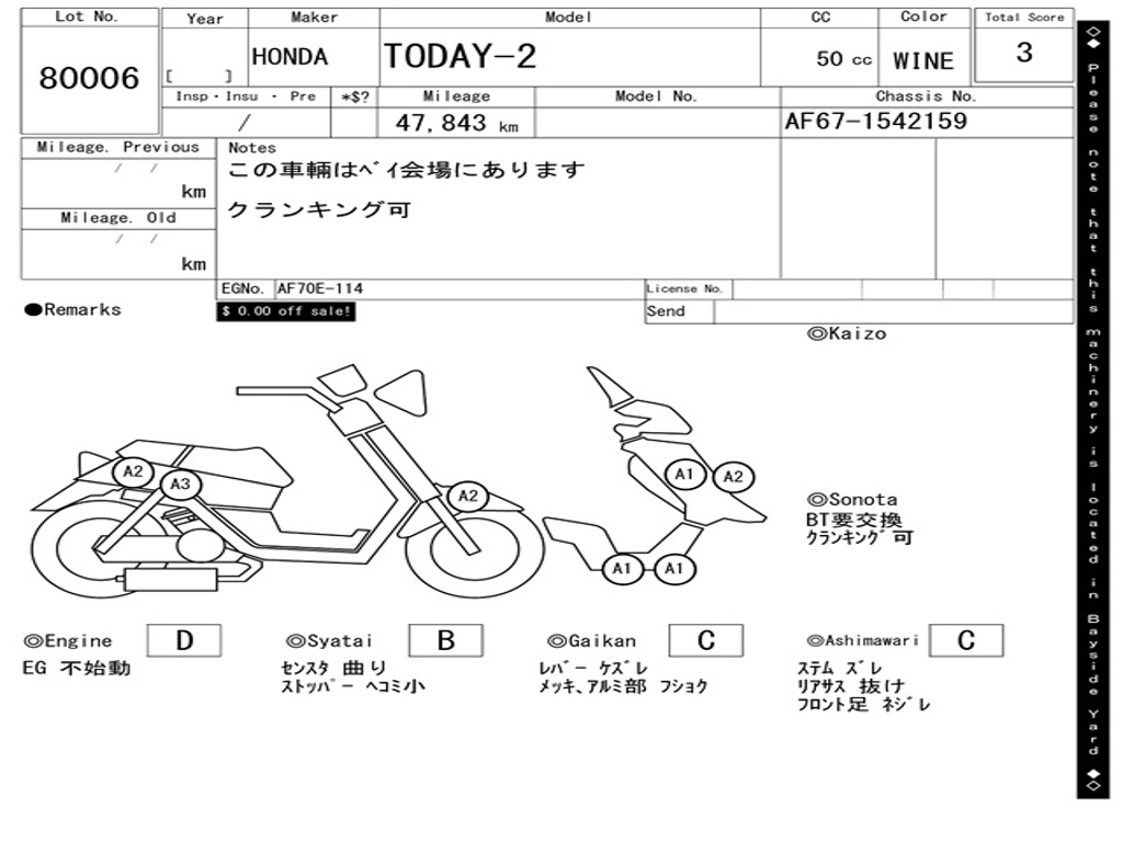| Аукцион | ARAI BAYSIDE |