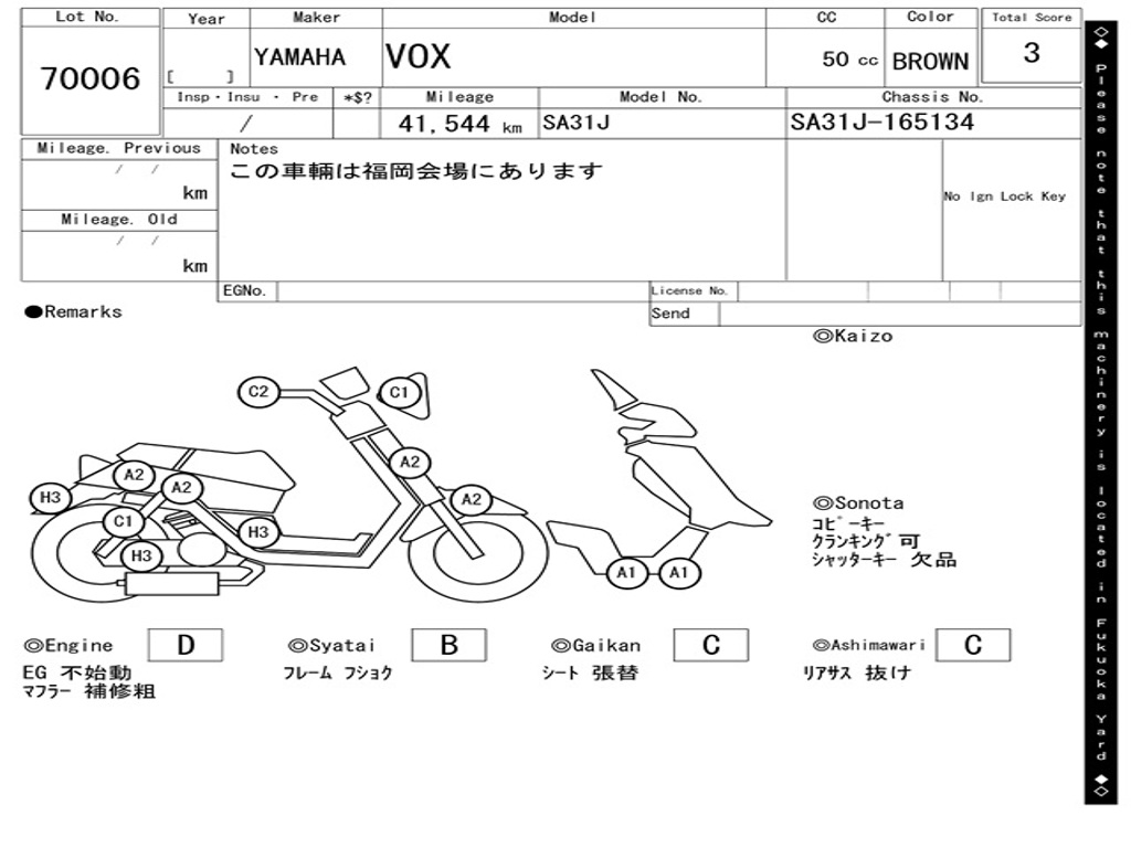 | Номер рамы / VIN | SA31J-165134 |