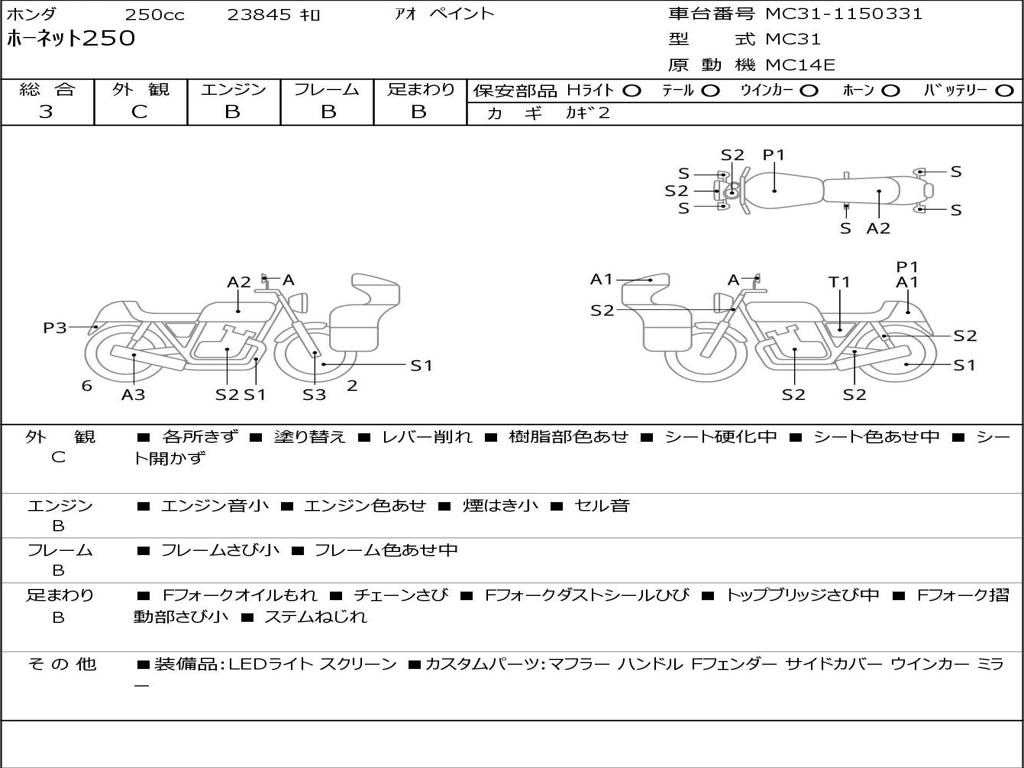 | Номер рамы / VIN | MC31-1150331 |