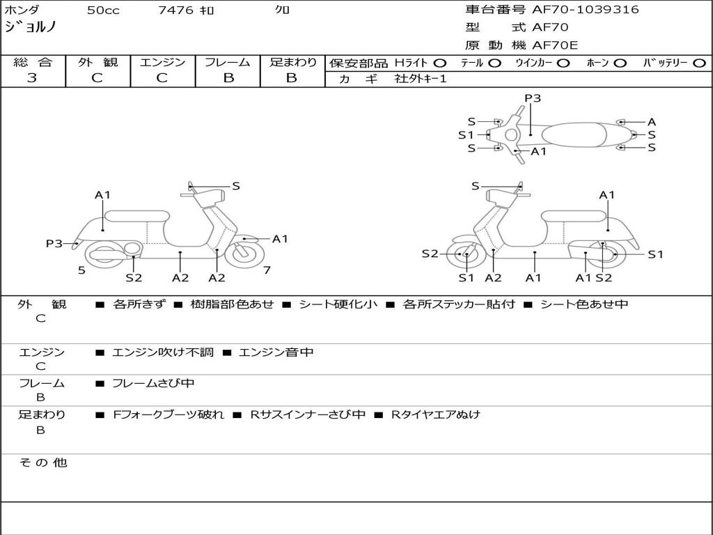 | Номер рамы / VIN | AF70-1039316 |