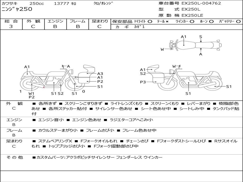 | Номер рамы / VIN | EX250L-004762 |
