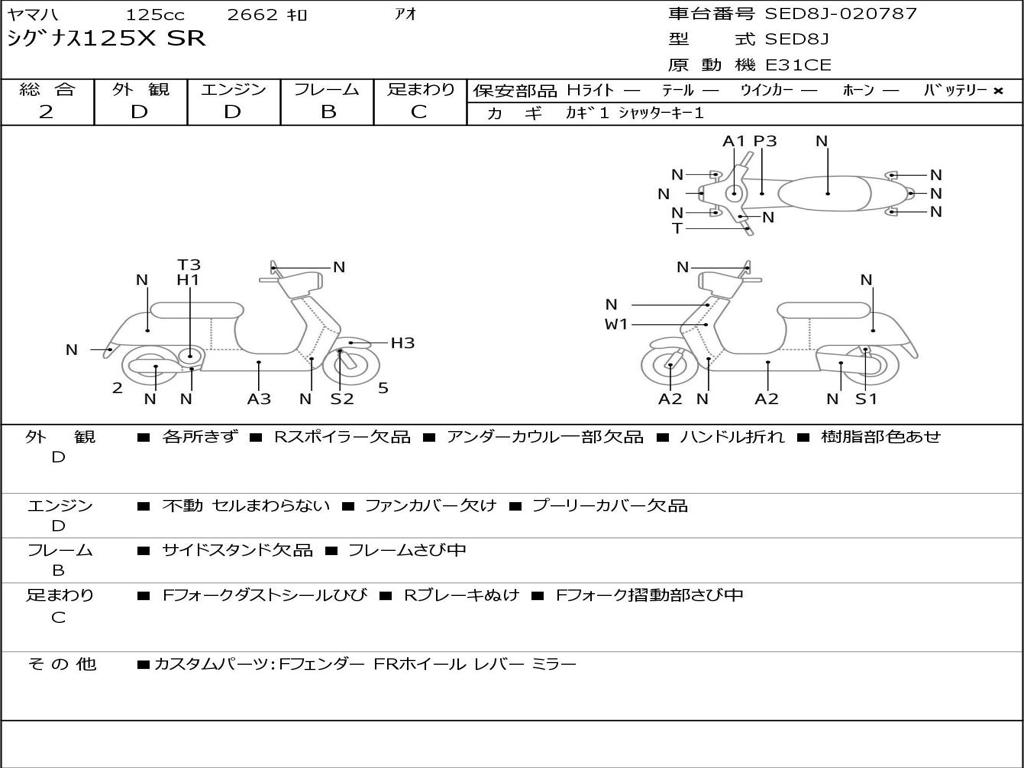 | Номер рамы / VIN | SED8J-020787 |