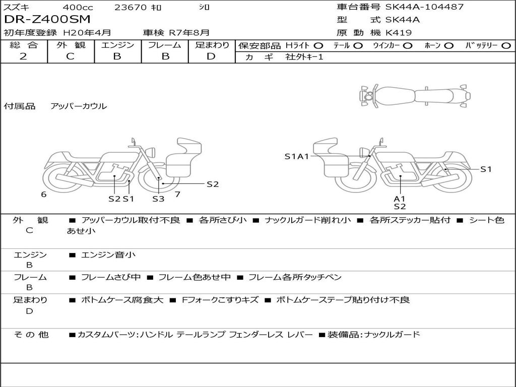 | Номер рамы / VIN | SK44A-104487 |