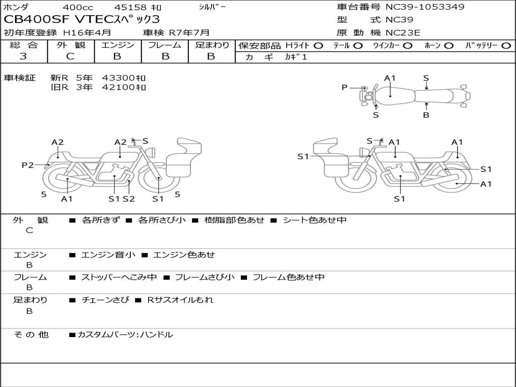 | Номер рамы / VIN | NC39-1053349 |