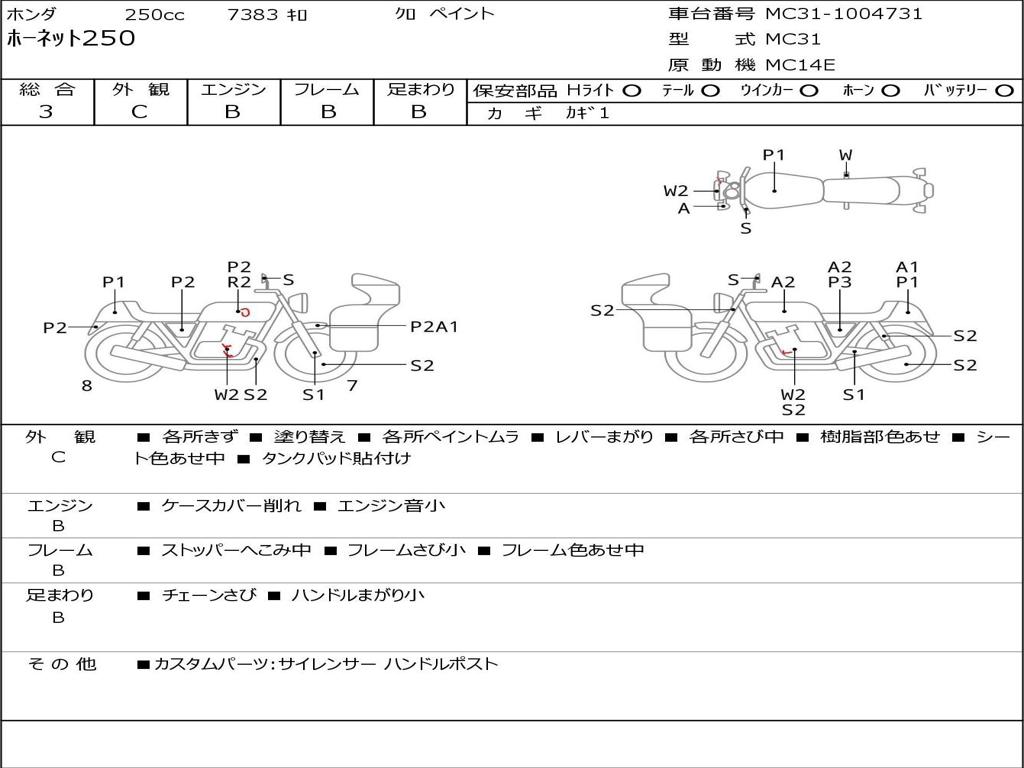 | Номер рамы / VIN | MC31-1004731 |