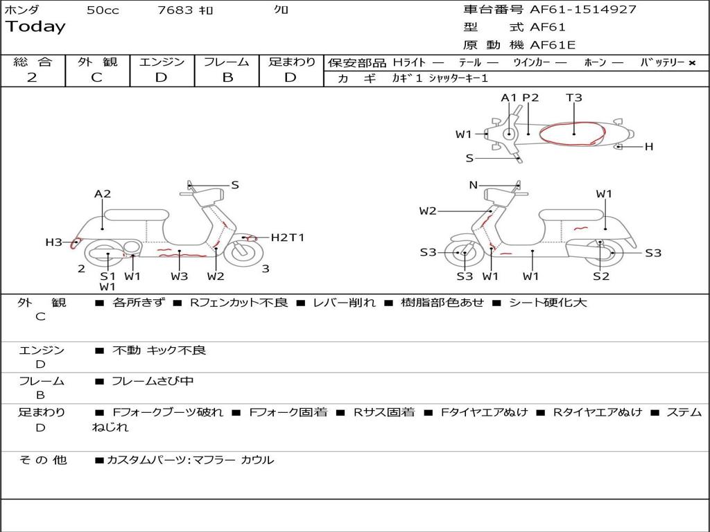 | Номер рамы / VIN | AF61-1514927 |