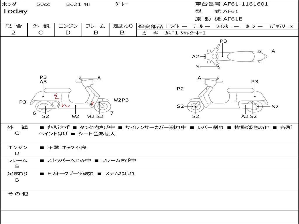 | Номер рамы / VIN | AF61-1161601 |