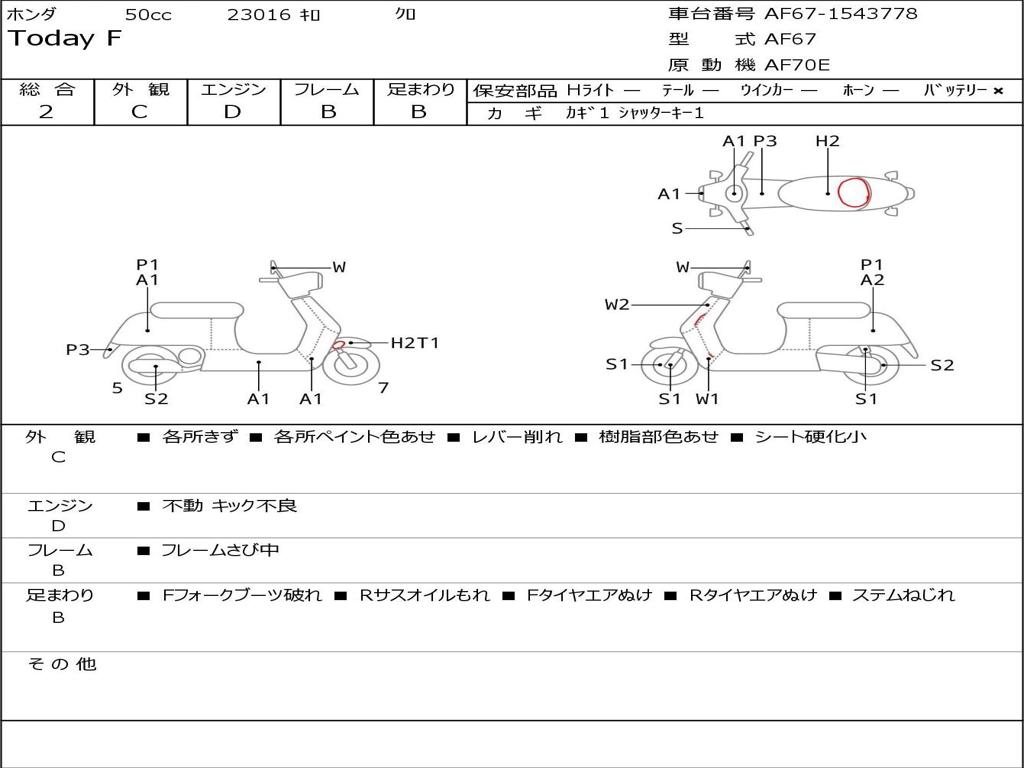 | Номер рамы / VIN | AF67-1543778 |
