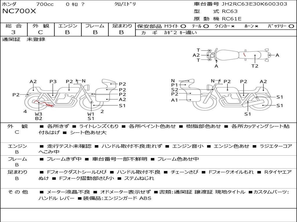 | Номер рамы / VIN | JH2RC63E30K600303 |