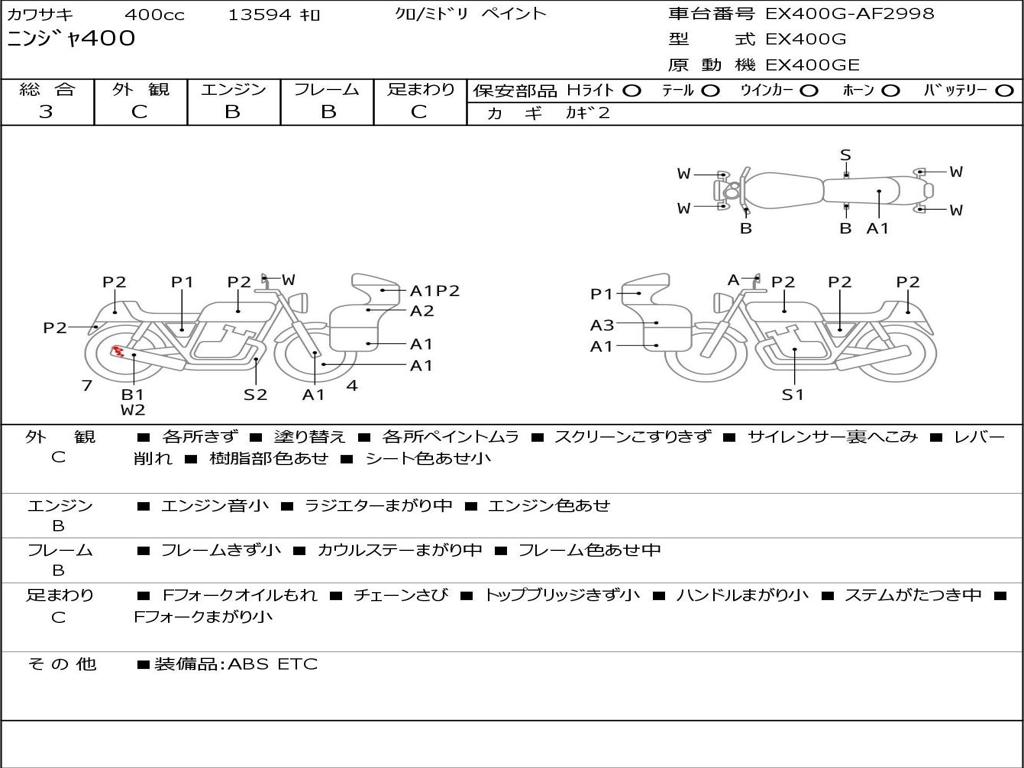 | Номер рамы / VIN | EX400G-AF2998 |