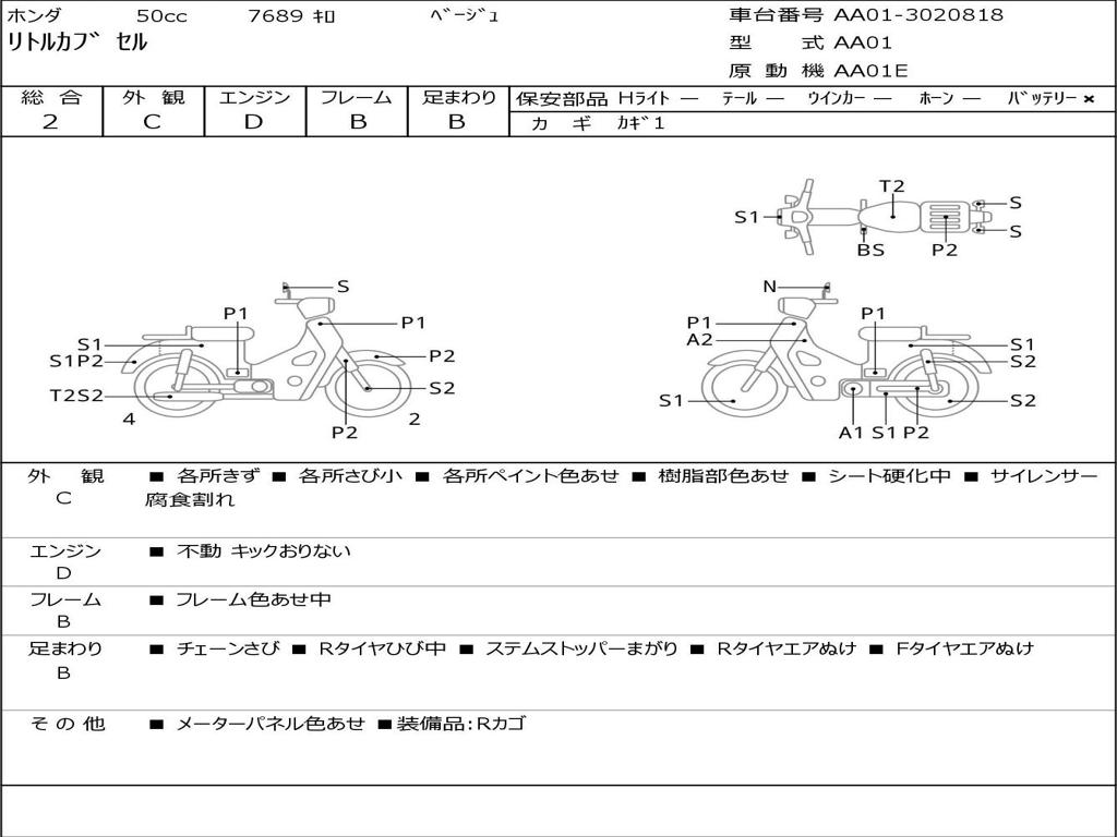 | Номер рамы / VIN | AA01-3020818 |