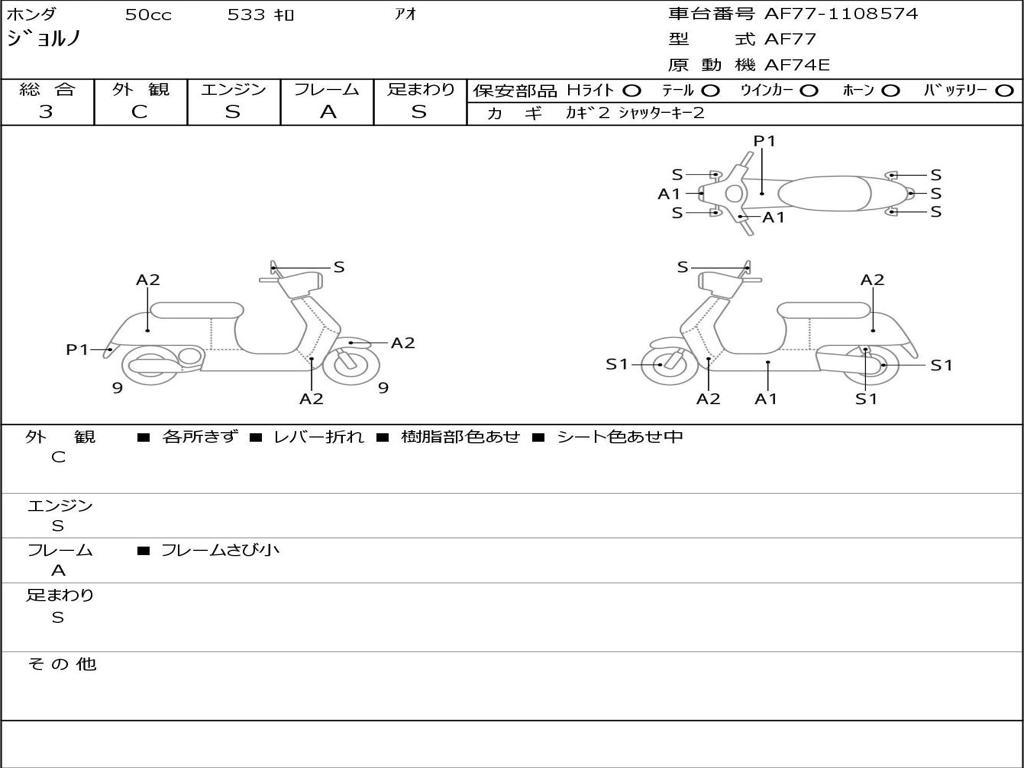 | Номер рамы / VIN | AF77-1108574 |
