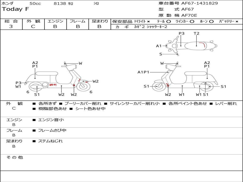 | Номер рамы / VIN | AF67-1431829 |