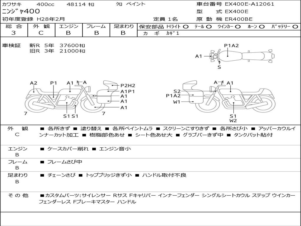 | Номер рамы / VIN | EX400E-A12061 |