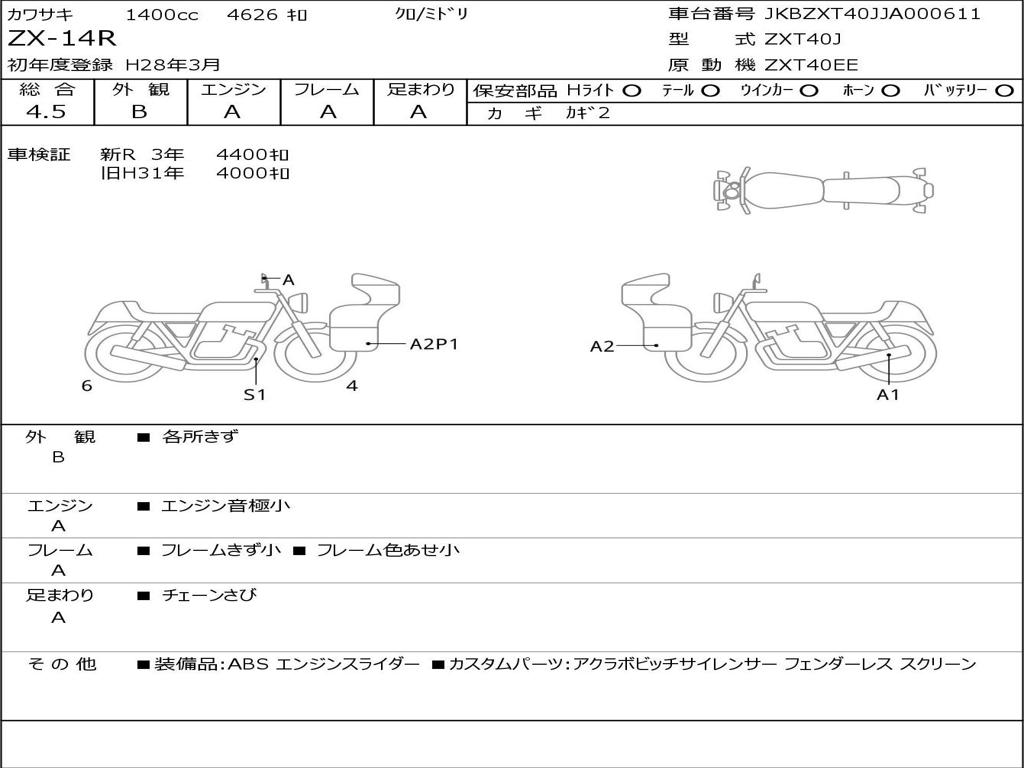 | Номер рамы / VIN | JKBZXT40JJA000611 |