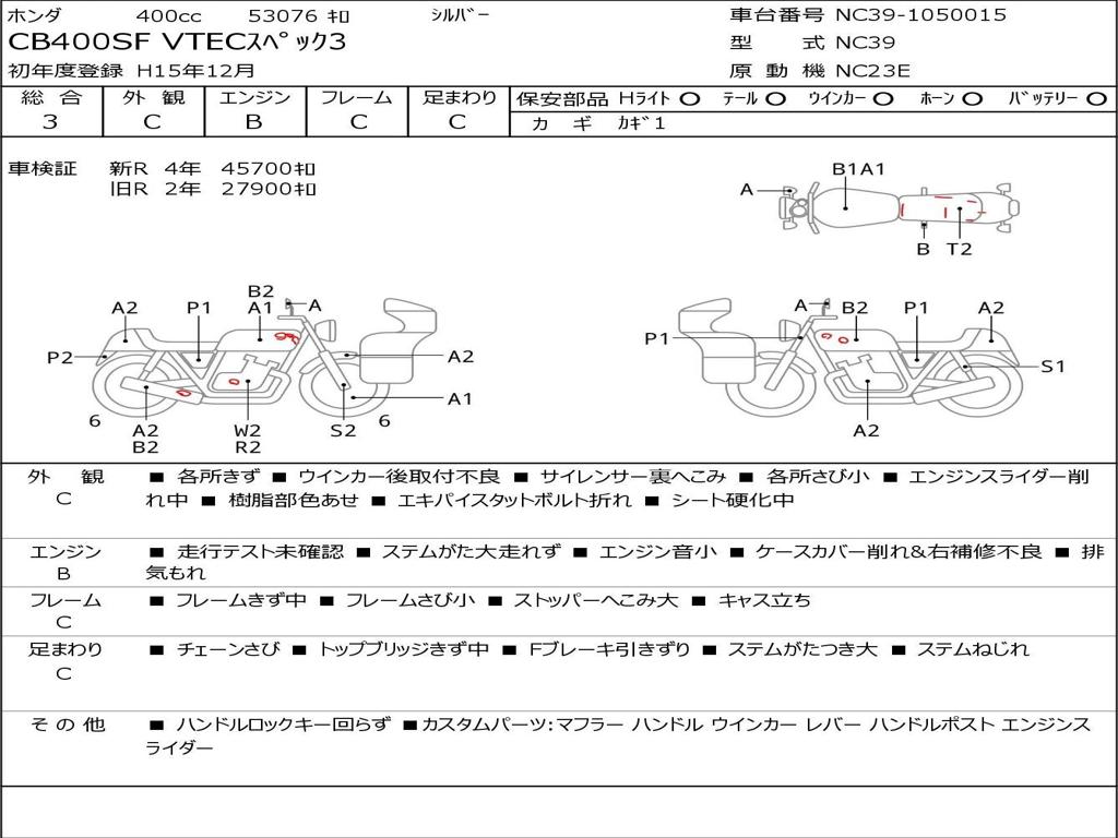 | Номер рамы / VIN | NC39-1050015 |