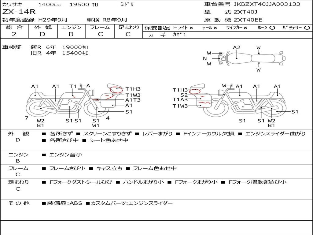 | Номер рамы / VIN | JKBZXT40JJA003133 |