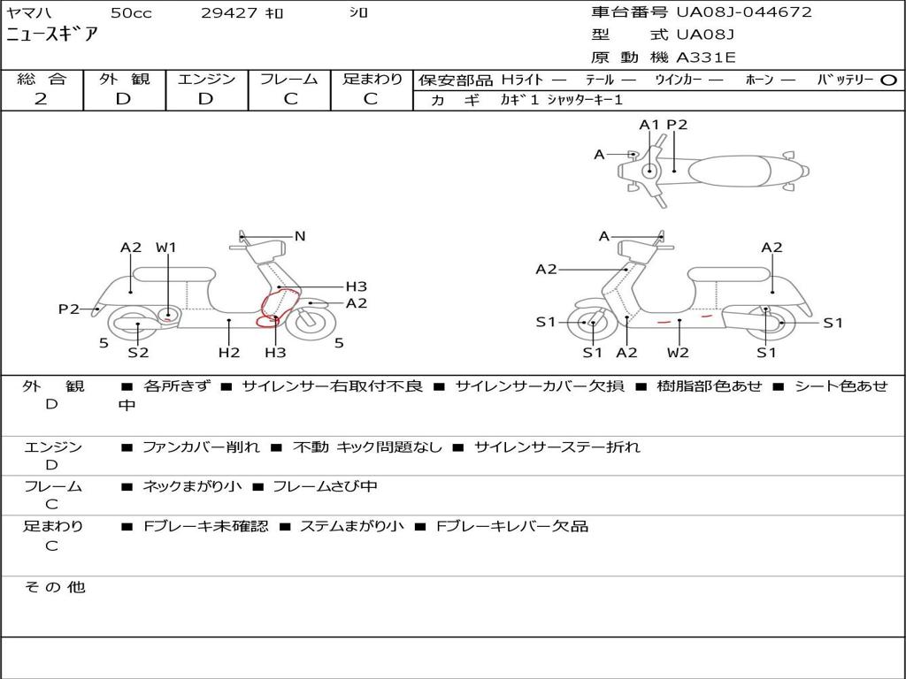 | Номер рамы / VIN | UA08J-044672 |