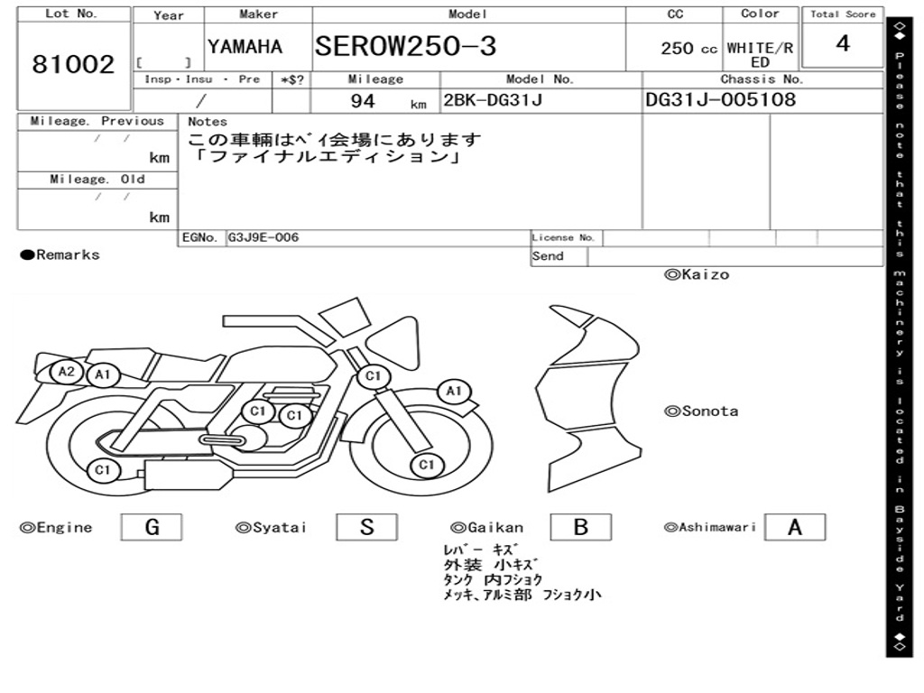 | Аукцион | ARAI BAYSIDE |