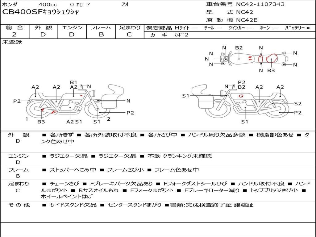 | Номер рамы / VIN | NC42-1107343 |