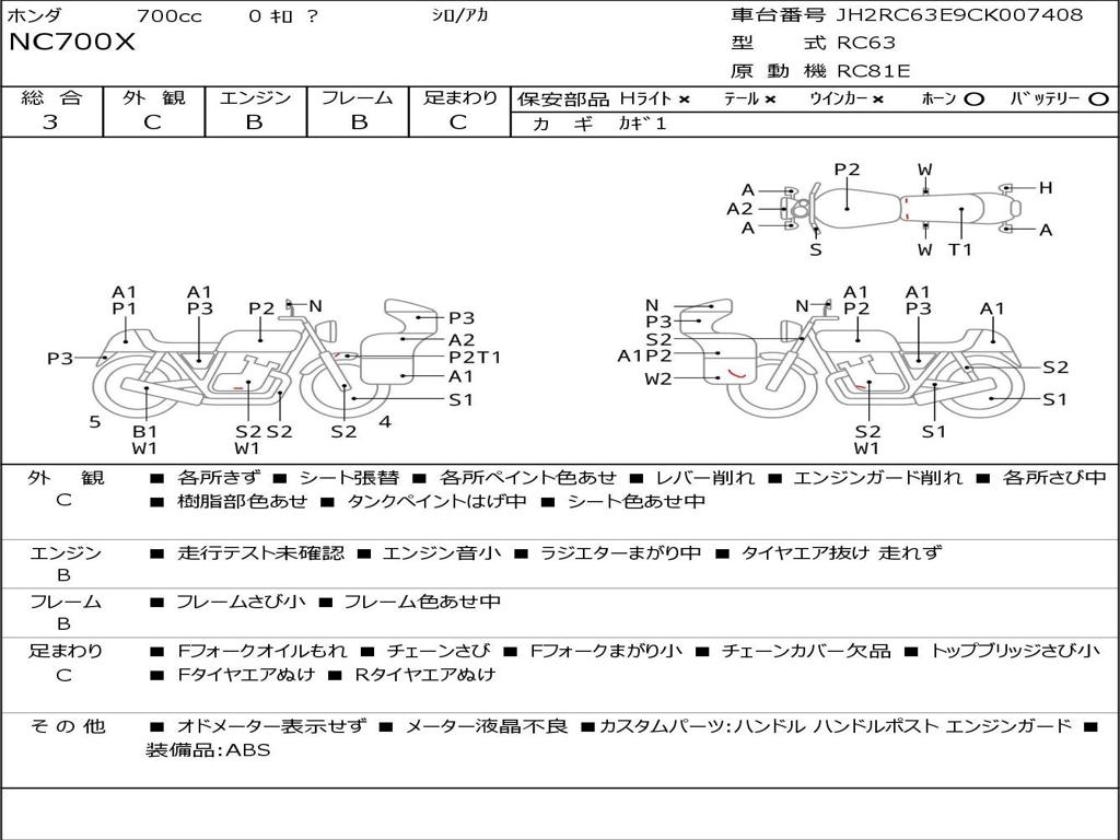 | Номер рамы / VIN | JH2RC63E9CK007408 |