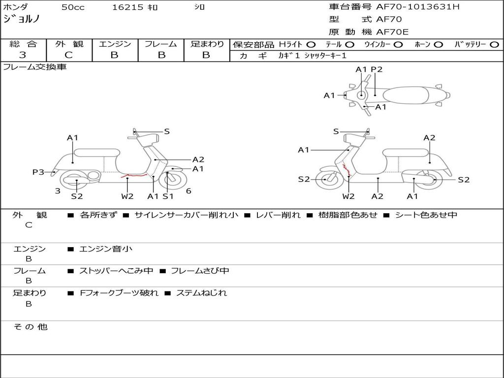 | Номер рамы / VIN | AF70-1013631H |