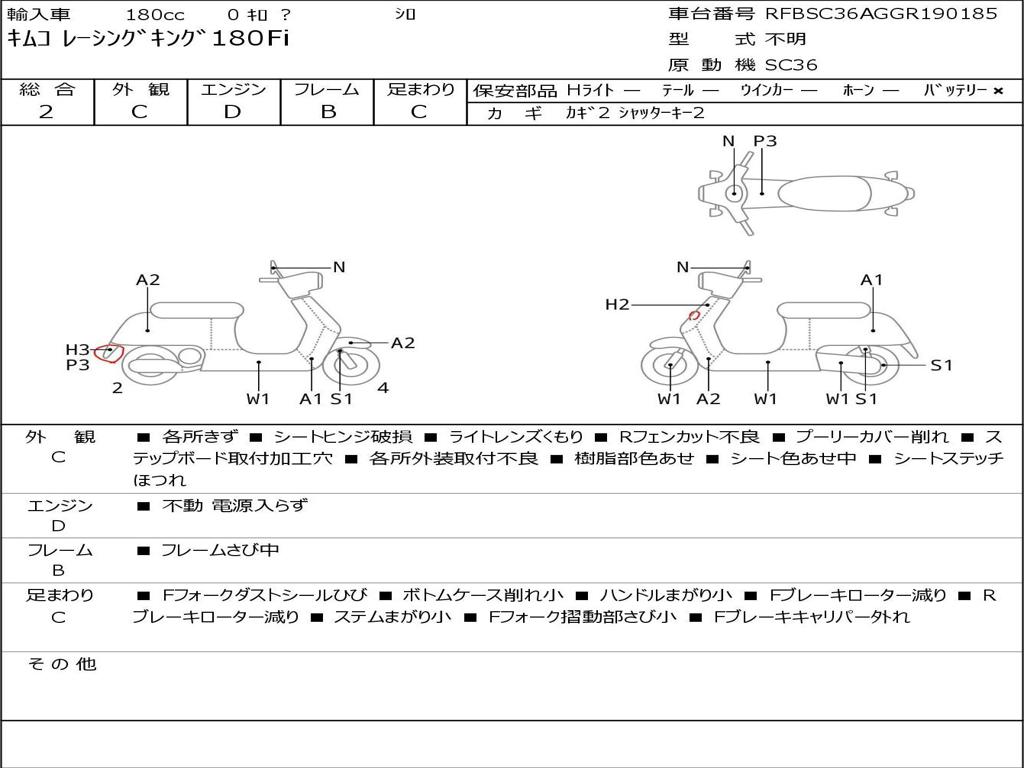 | Номер рамы / VIN | RFBSC36AGGR190185 |