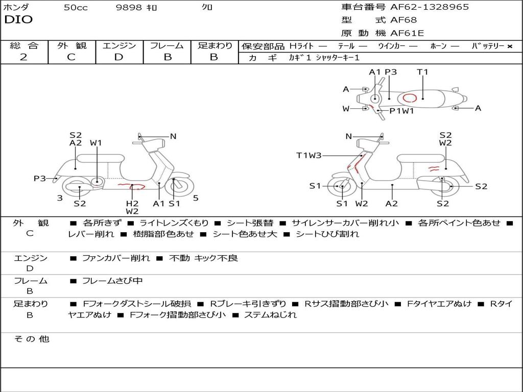 | Номер рамы / VIN | AF62-1328965 |