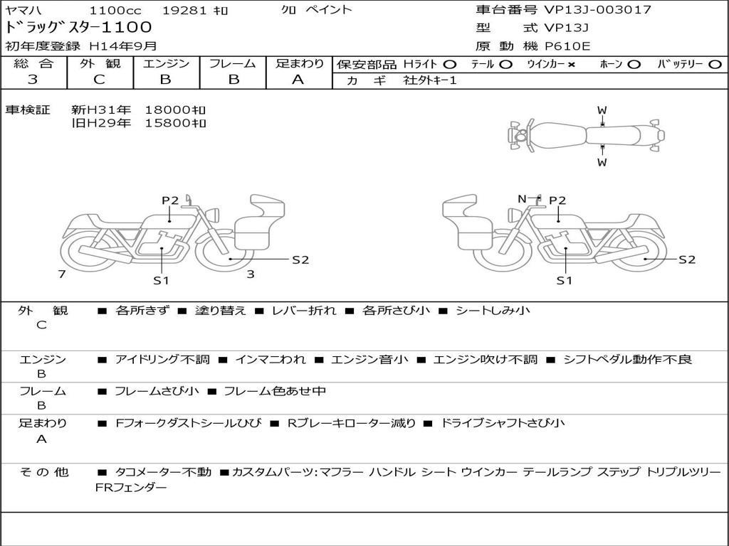 | Номер рамы / VIN | VP13J-003017 |
