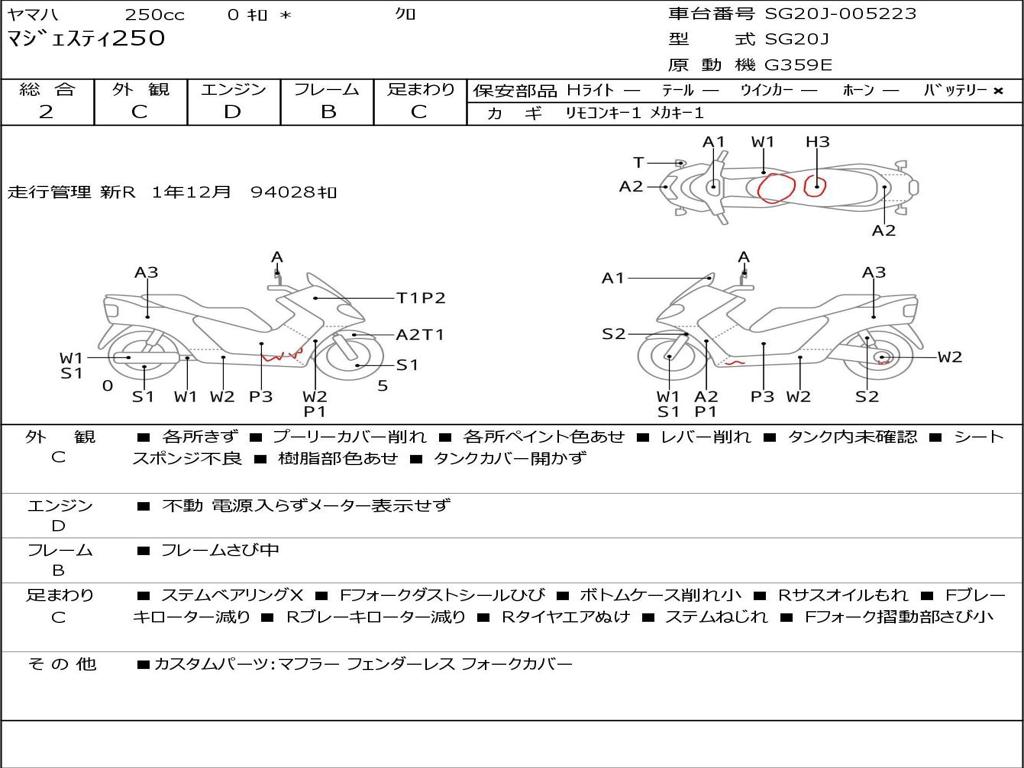 | Номер рамы / VIN | SG20J-005223 |