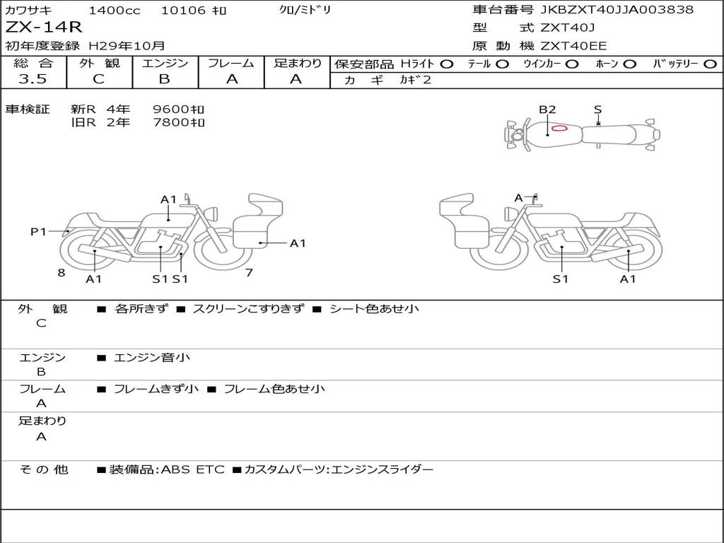 | Номер рамы / VIN | JKBZXT40JJA003838 |