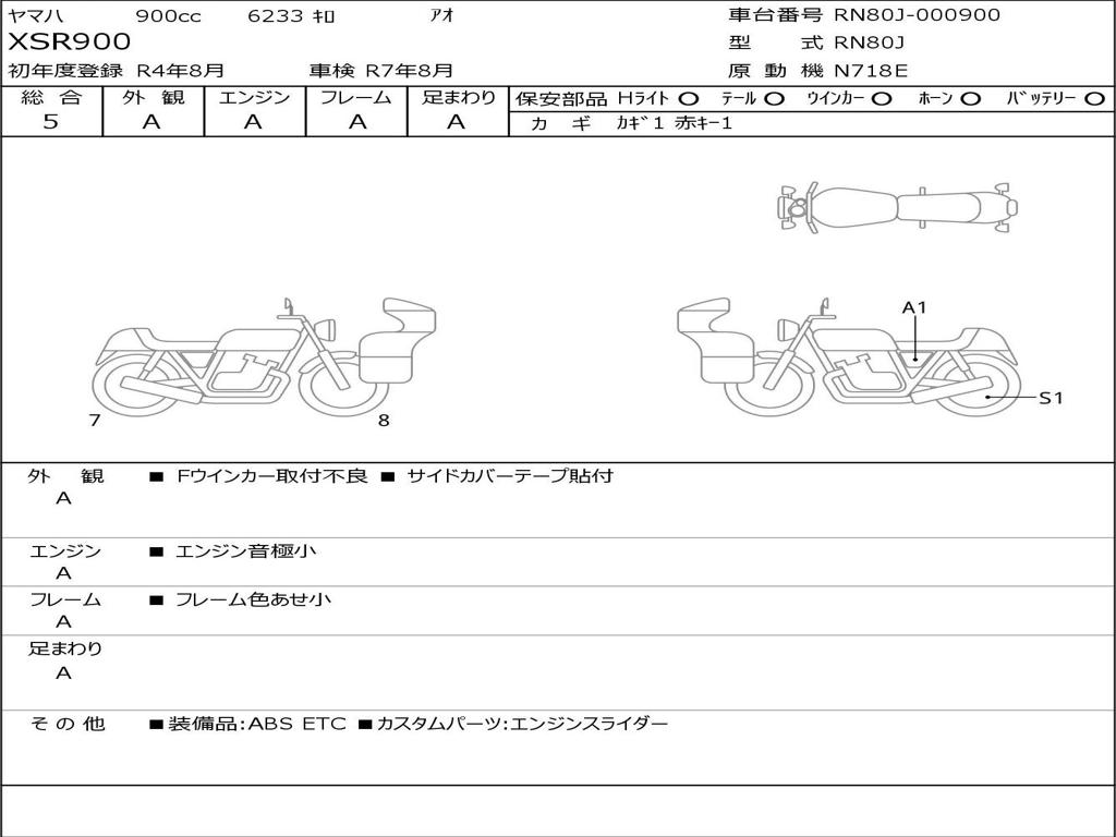 | Номер рамы / VIN | RN80J-000900 |