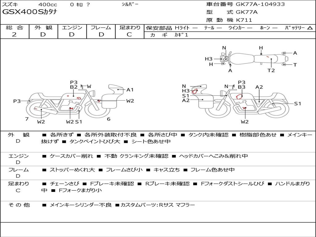 | Номер рамы / VIN | GK77A-104933 |